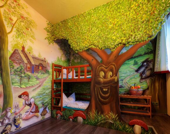 Zauberhafte Träume sind in unseren Märchenzimmern garantiert. Die mit aufwendiger Wandbemalung gestalteten Zimmer in der „Alten Brauerei“ bilden den idealen Rahmen zu einem Besuch im Freizeitpark oder als Ausgangspunkt für Ausflüge in das Vogtland. Sie haben die märchenhafte Wahl zwischen einer Übernachtung im Zimmer „Frau Holle“, „Schneeweißchen und Rosenrot“ oder „Froschkönig“.